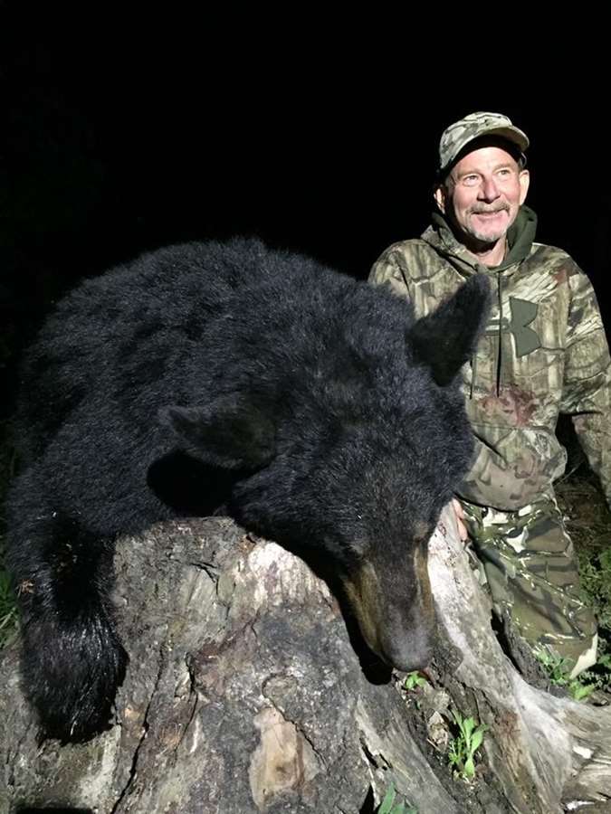 If you take a shot at a bear, our policy is that we will make every possible effort to recover your bear. However, if we cannot find the bear, we consider it wounded. At this point you have two options. You can end your hunt and consider your bear tag filled, or continue your hunt after paying an additional $300 wounding fee. Why a wounding fee? We don’t like to see a hunter have their hunt stopped without getting a bear but we also don’t like wounding bears. We put many hours into trying to find you a trophy bear to harvest and when a bear is wounded, you have either killed or educated the bear and eliminated a bear from our bait sites. This fee is in place to encourage the hunter to think about their shot wisely, as well as to account for the time and resources we have to spend searching for wounded bears and finding a new bait for the hunter if necessary. We understand that wounding animals is sometimes inevitable and is a part of hunting, but to minimize wounding please practice prior to your arrival, take your time, and make a clean ethical shot.