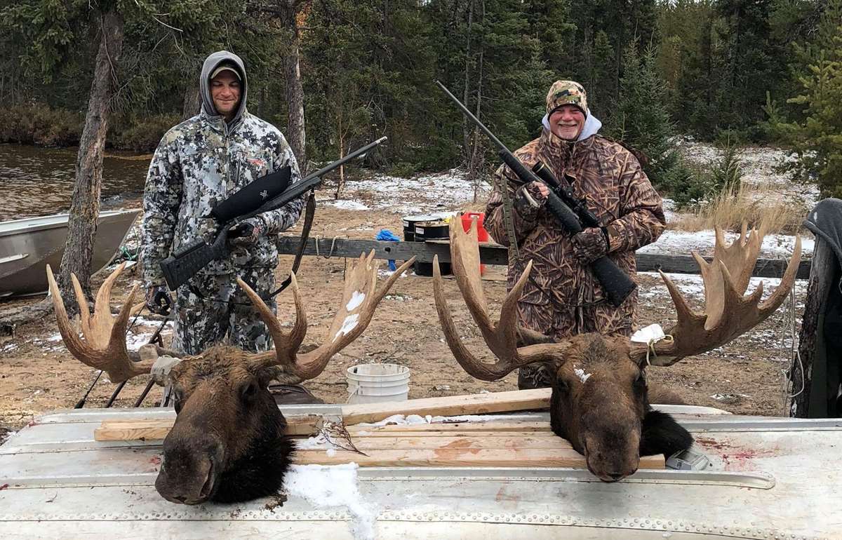 Over the past 6 years our success rate has averaged 75% on shooting opportunities. We would like to invite you to hunt with us for the 2022 fall season. We take a limited number of Moose hunters each fall. The Govt. of Manitoba allocates us 15 (bull only) tags for our exclusive 5,000 square mile hunting area. We are the only outfitter allowed to take moose hunters in this area and it is strictly fly-in with no road access. You will not see other hunters and will be alone in an area with your guide. This is a one guide/ 2 hunters ratio hunt. The moose in our area are the largest of the Canada species. They can reach a weight up to 1,700 lbs. and attain a rack up to 70 inches with the average being over 50 inches in width. We are located in Northern Manitoba where moose have the opportunity to get big and old. The record for moose taken with a gun in Manitoba is 228 3/8 Boone & Crockett pt.s and by archery is 203 3/8 Pope & Young pts. Season dates run: end of August till October 15, but the prime weeks of the rut we hunt are September 13 -Oct. 10 for the 2022 fall season. You can also shoot a Timber Wolf on your moose tag at no extra expense and you can purchase a bear tag. There are no trophy fees for any of these hunts and fishing is also included. Season Hunt Dates: 2022 Season Hunt Dates: Hunt 1: September 19-26, 2022 Hunt 2: September 26-October 3, 2022